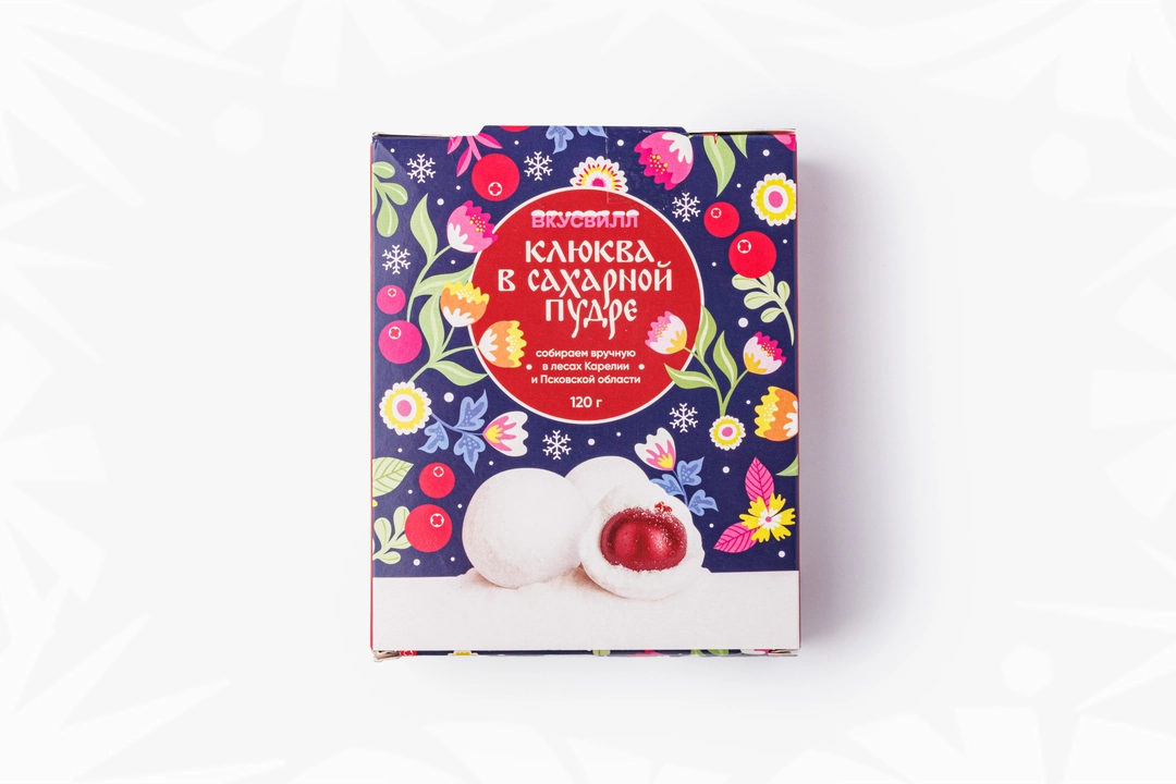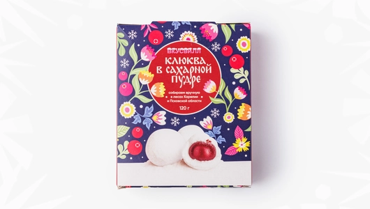 Дикую клюкву для этого лакомства собирают на Северо-Западе России. Все ягоды дважды перебирают вручную, чтобы в коробочку попали только самые свежие и спелые. Каждая ягодка уникальна: её кислинка может быть мягкой или интенсивной, а горчинка — хорошо ощутимой или почти незаметной. Сахарная пудра придаёт десерту деликатную сладость, помогая сбалансировать все оттенки вкуса и при этом сохранить узнаваемую терпкость натуральной клюквы. Упаковка может отличаться от представленного на фотографии.
