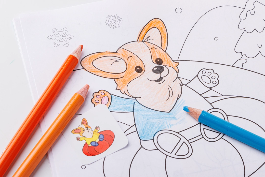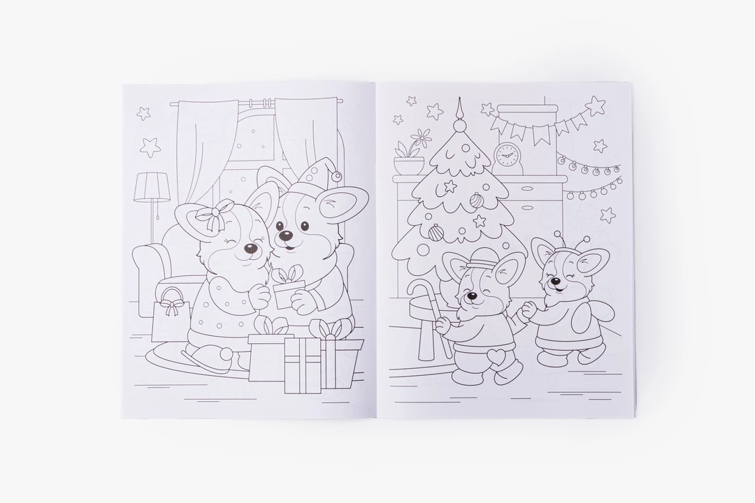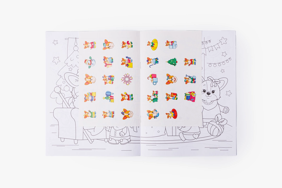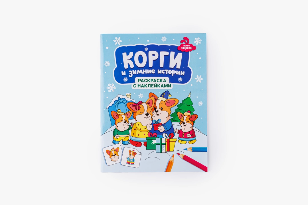 Книжка-раскраска с наклейками "Корги и зимние истории"