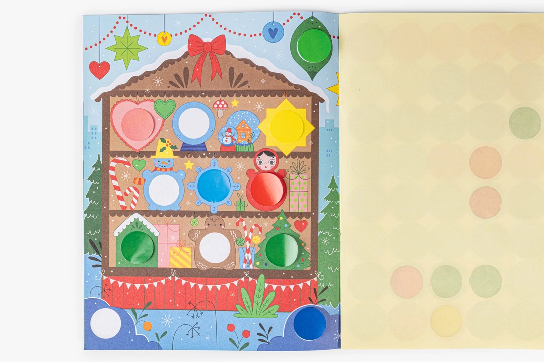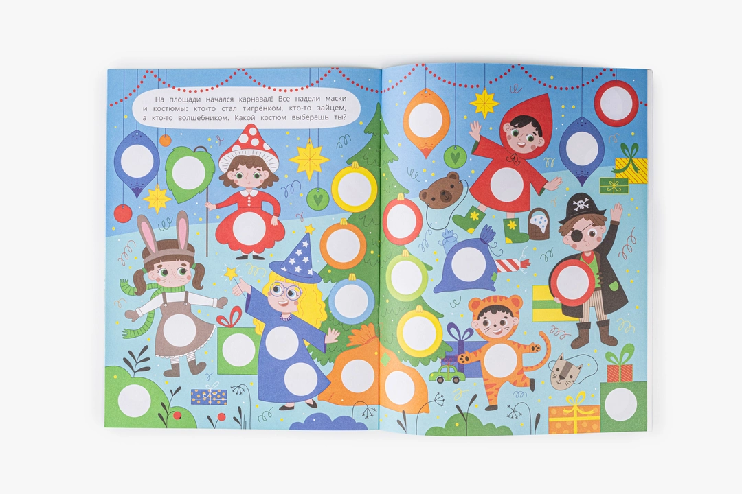 Книжка с наклейками приглашает ребёнка создать собственный праздничный город, наполняя улицы яркими деталями. Красочные иллюстрации знакомят с новогодними традициями в доступной игровой форме, а стикеры помогут дополнить картины. Крупные элементы удобно брать маленькими пальчиками, это помогает развивать координацию движений. Дети учатся соотносить цвета, строить первые логические взаимосвязи. Такие занятия тренируют внимательность и расширяют знания об окружающем мире.