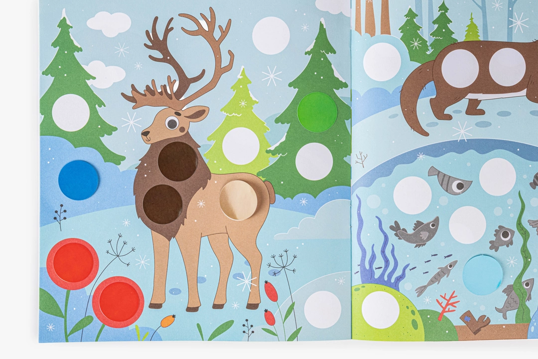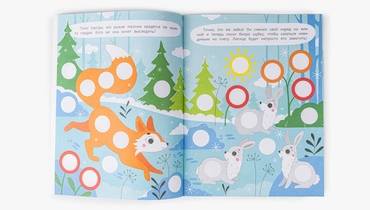 Книжка с наклейками переносит малыша в заснеженный лес, где живут пушистые зверьки и зимующие птицы. Яркие иллюстрации знакомят с зимней природой в доступной игровой форме, а красочные стикеры помогут дополнить картины. Крупные элементы удобно брать маленькими пальчиками, это помогает развивать координацию движений. Ребёнок учится соотносить цвета, строить первые логические взаимосвязи. Такие занятия тренируют внимательность и расширяют знания об окружающем мире.