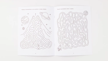 Книжка перенесёт малыша в межгалактическое путешествие, где каждый лабиринт — новый мир для исследования. Ребёнок проведёт космический корабль через звёздные скопления, попутно решая весёлые задачки, его пальчики будут аккуратно скользить по страницам. Милые иллюстрации с дружелюбными персонажами превращают обучение в захватывающую игру. Задания постепенно усложняются, помогая юному путешественнику получать знания в игровой форме. Такое приключение увлечёт даже самых непоседливых космонавтов.