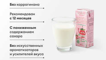 В нашем детском молочном коктейле пониженное содержание сахара, а наполнитель приготовлен из клубники и фруктозного сиропа. Не добавляем искусственных ароматизаторов или усилителей вкуса