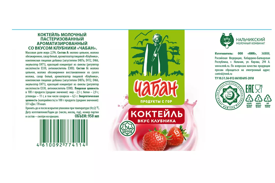 Вся продукция «Чабан» производится из отборных ингредиентов по уникальной технологии обработки. Мы тщательно прорабатываем все варианты и по итогу предоставляем покупателям лучшее. Нежное сочетание отборного молока и клубники придется по вкусу даже самым требовательным ценителям. Кроме того, что коктейль – самостоятельный десертный напиток, его также можно дополнять ягодами, гранолой или использовать в качестве основы для смузи. Страна-производитель Россия