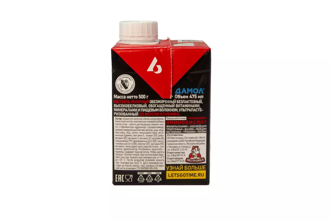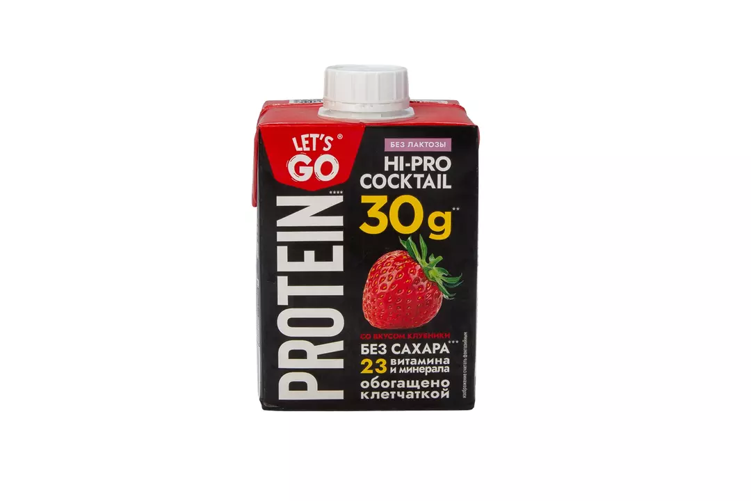 Коктейль молочный Let`s Go Клубника безлактозный протеиновый 0% 500 г / Супермаркет