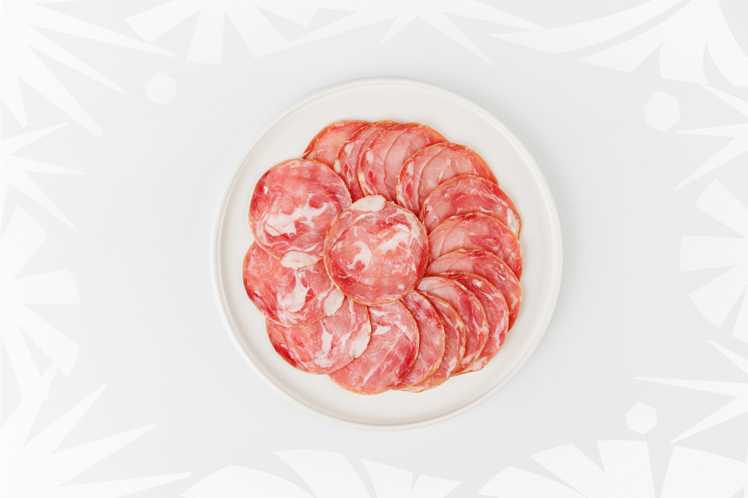 Сыровяленая колбаса, приготовленная по итальянской технологии. Отличается плотной волокнистой структурой и насыщенным солоновато-пряным вкусом с гармоничной кислинкой. Уже нарезанная на тонкие ломтики, она прекрасно дополнит мясную тарелку и сытные бутерброды. Отлично сочетается с оливками, руколой, томатами и мягким багетом.
