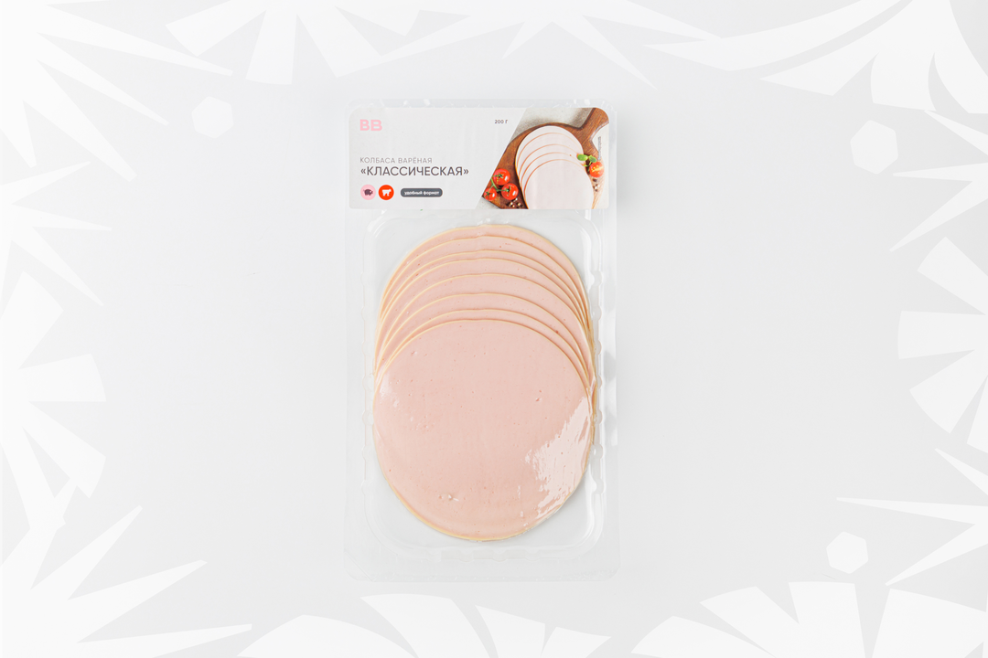 Классическая варёная колбаса из свинины и говядины. У неё яркий мясной вкус с оттенками пряных специй и упругая, но нежная структура. Идеальный ингредиент для сытных бутербродов, яичницы и пышного омлета! В нашей колбасе нет искусственных консервантов. Вместо них мы используем растительные экстракты, в данном случае это экстракты помело и лимона.