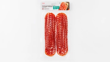 Пряная, солоноватая, чуть пикантная и аппетитно ароматная Салями из сочной свинины и шпика. Колбаса заботливо нарезана на тонкие ломтики — идеальные для бутербродов и мясных тарелок.