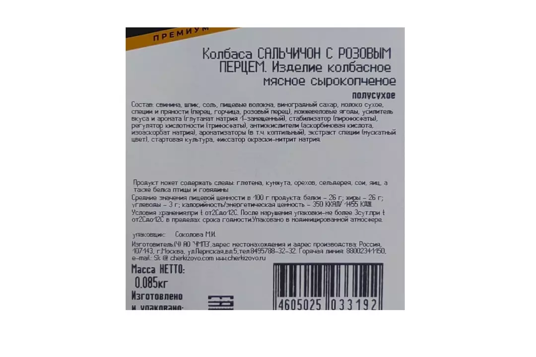 Нарезка изысканного сырокопченого деликатеса «Премиум Сальчичон» с розовым перцем от бренда «Черкизово» станет идеальным акцентом на вашем праздничном столе. Великолепная сырокопченая колбаса, приготовленная по испанским рецептам, содержит в себе только натуральное мясо с собственных ферм и лучшие специи. Благодаря герметичной упаковке колбаса сохраняет свежесть и все свои вкусовые качества. Страна производитель-Россия