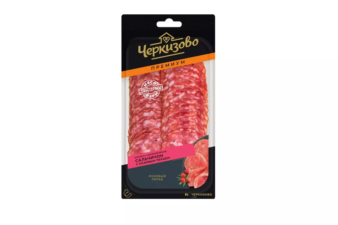 Нарезка изысканного сырокопченого деликатеса «Премиум Сальчичон» с розовым перцем от бренда «Черкизово» станет идеальным акцентом на вашем праздничном столе. Великолепная сырокопченая колбаса, приготовленная по испанским рецептам, содержит в себе только натуральное мясо с собственных ферм и лучшие специи. Благодаря герметичной упаковке колбаса сохраняет свежесть и все свои вкусовые качества. Страна производитель-Россия