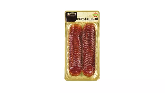 Данная колбаса является родственницей полусухих средиземноморских колбас, приготовленных из рубленой свинины, шпика, ярких пряных трав и оригинальных добавок. В качестве последней составляющей выступает пикантная брусника, давно зарекомендовавшая себя, как отличная мясная приправа. Ягода придает характерному сладковатому вкусу вяленого мяса интересную терпкую нотку. Россия