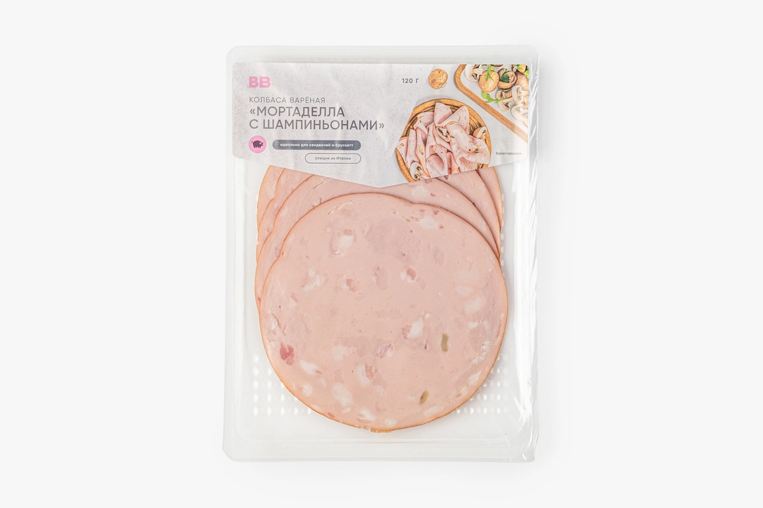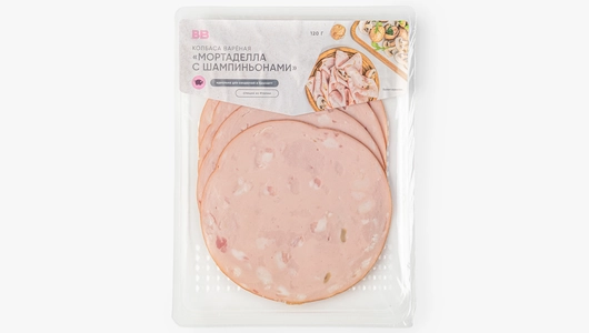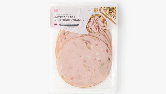 Колбаса вареная "Мортаделла с шампиньонами", нарезка