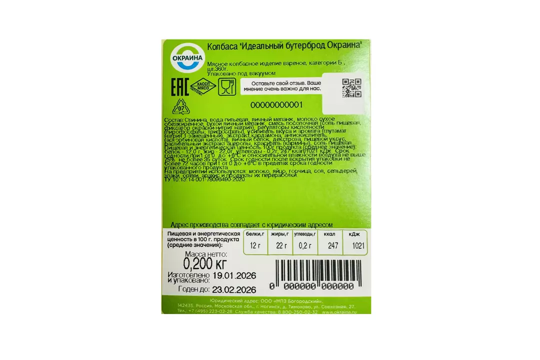 Традиционный вкус вареной колбасы в инновационном формате. Попробуйте оригинальную колбасу Окраина Идеальный Бутерброд и оцените удобство новой формы! Теперь приготовление бутербродов на завтрак для всей семьи станет быстрым и приятным занятием: просто отрежьте ломтик колбасы нужной толщины и положите на кусочек нарезного батона. Это колбаса не только удобна, но и весьма экономична: 1 ломтик колбасы = 1 Идеальный Бутерброд! Мы разгадали геометрию бутерброда, вся фишка в форме. Страна производитель-Россия