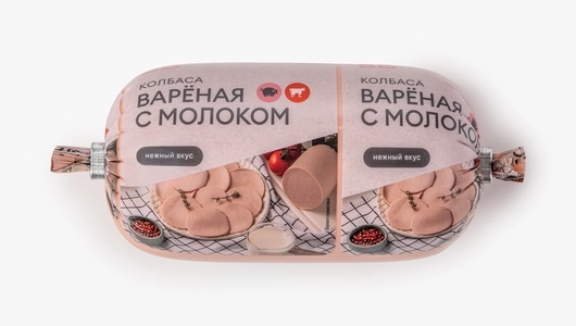 Нежная варёная колбаса приготовлена по традиционному рецепту из свинины и говядины. Добавление цельного молока делает её вкус особенно мягким и бархатистым, а мускатный орех и перец придают мясу тёплую пряность. Колбаса хороша для завтрака с тостами и приготовления бутербродов и сэндвичей, её можно обжарить с яичницей или нарезать в салаты.