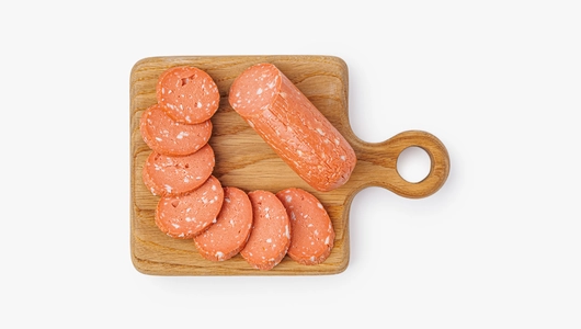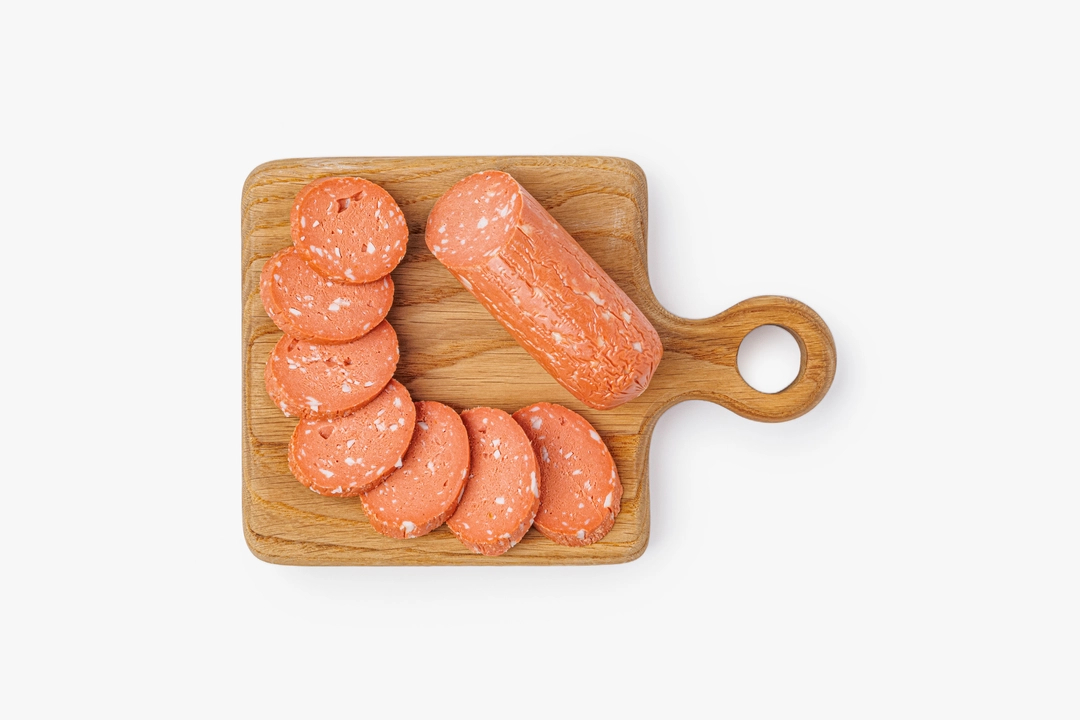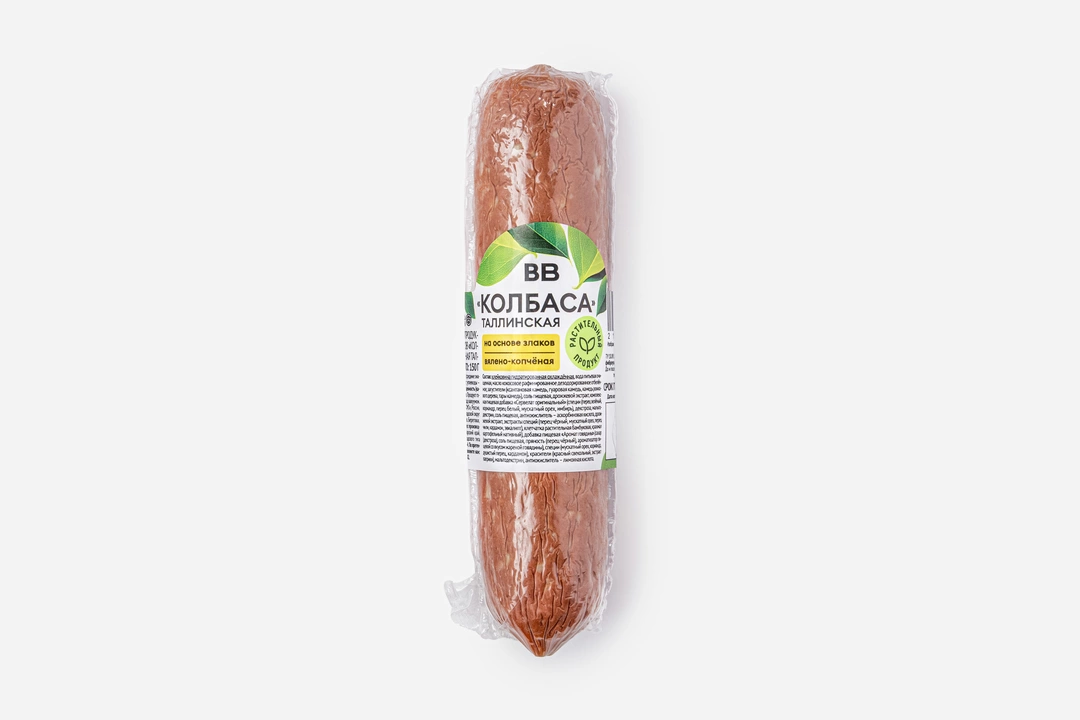 В Таллинской есть всё, кроме животных ингредиентов: плотная текстура, яркий копчёно-пряный вкус и красивый срез с вкраплениями «шпика». Секрет успеха — в богатом букете специй, длительном вялении и холодном копчении на фруктовой щепе.