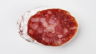 Сыровяленая колбаска с благородной плесенью и трюфелем — деликатес с насыщенным вкусом и ароматом. Основа — филе утки и куриная грудка, сбалансированные по текстуре и вкусу. Трюфель придаёт тонкие землистые нотки, а благородная плесень завершает образ традиционной французской закуски. Подходит для сырной тарелки или просто как особенное лакомство.