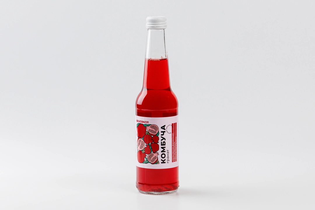 Ферментированный напиток на основе чистой культуры чайного гриба. Лёгкий, кисленький, с еле заметной сладостью стевии. Гранатовый сок даёт лёгкую терпкость и фруктовые нотки. Отлично освежает и утоляет жажду. Волокна в комбуче — свидетельство её натуральности. Напиток не фильтруют, не пастеризуют. Для него не используют консерванты, искусственные ароматизаторы или красители. Перед употреблением слегка встряхните бутылку. Открывайте осторожно: напиток живой, самогазирующийся. Степень газации зависит от длительности выдержки в бутылке: в комбуче свежего разлива «пузырьков» практически нет.