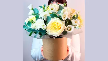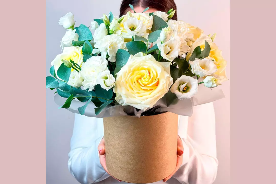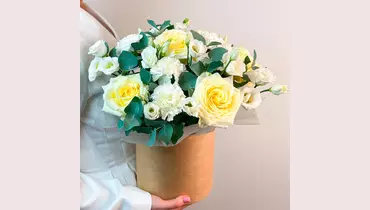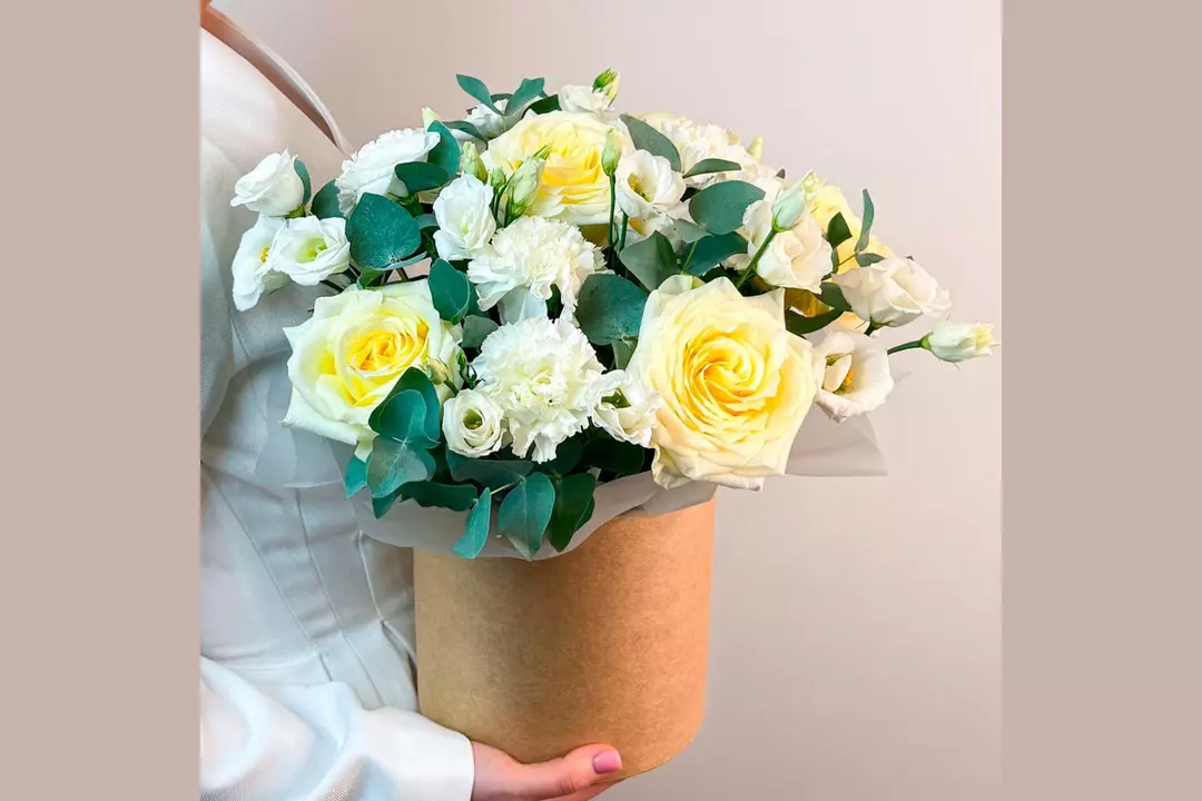 Наши флористы с большим удовольствием собирают эту цветочную композицию, потому что знают, как радуются ваши близкие, когда получают ее в подарок ✨ 🌷 Чтобы цветы в композиции радовали как можно дольше 🌷: * Не доставайте их из флористической губки. * Каждый день поливайте губку отстоянной водой комнатной температуры. Следите, чтобы вода не попадала на головки цветов. * Срезайте увядшие бутоны. * Держите цветы подальше от фруктов, сквозняков, прямых солнечных лучей, источников тепла (батареи, настольные лампы, кипящий чайник). Состав Лизиантус - 3 шт. Эвкалипт - 1 шт. Гвоздика - 6 шт. Оазис флористический - 1 шт. Коробка 16*16 - 1 шт. Кенделайт роза - 5 шт.