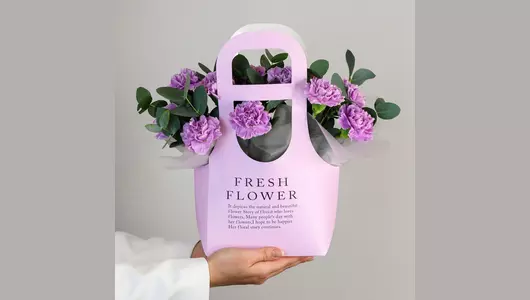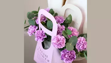 Стильная авторская композиция наполнит обычный день цветочной свежестью и станет настоящим украшением любого праздника. 🌷 Чтобы цветы в композиции радовали как можно дольше 🌷: * Не доставайте их из флористической губки. * Каждый день поливайте губку отстоянной водой комнатной температуры. Следите, чтобы вода не попадала на головки цветов. * Срезайте увядшие бутоны. * Держите цветы подальше от фруктов, сквозняков, прямых солнечных лучей, источников тепла (батареи, настольные лампы, кипящий чайник). Состав Эвкалипт - 1 шт. Гвоздика - 11 шт. Оазис - 1 шт. Сумка для цветов - 1 шт.