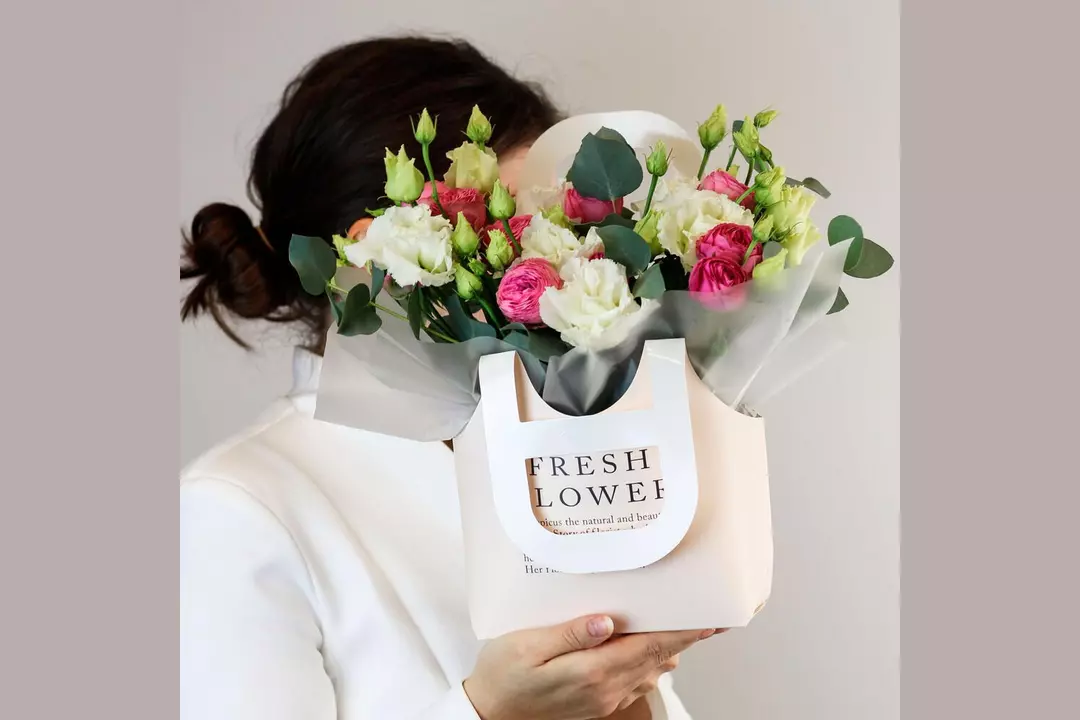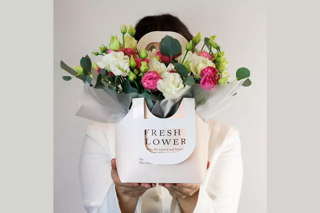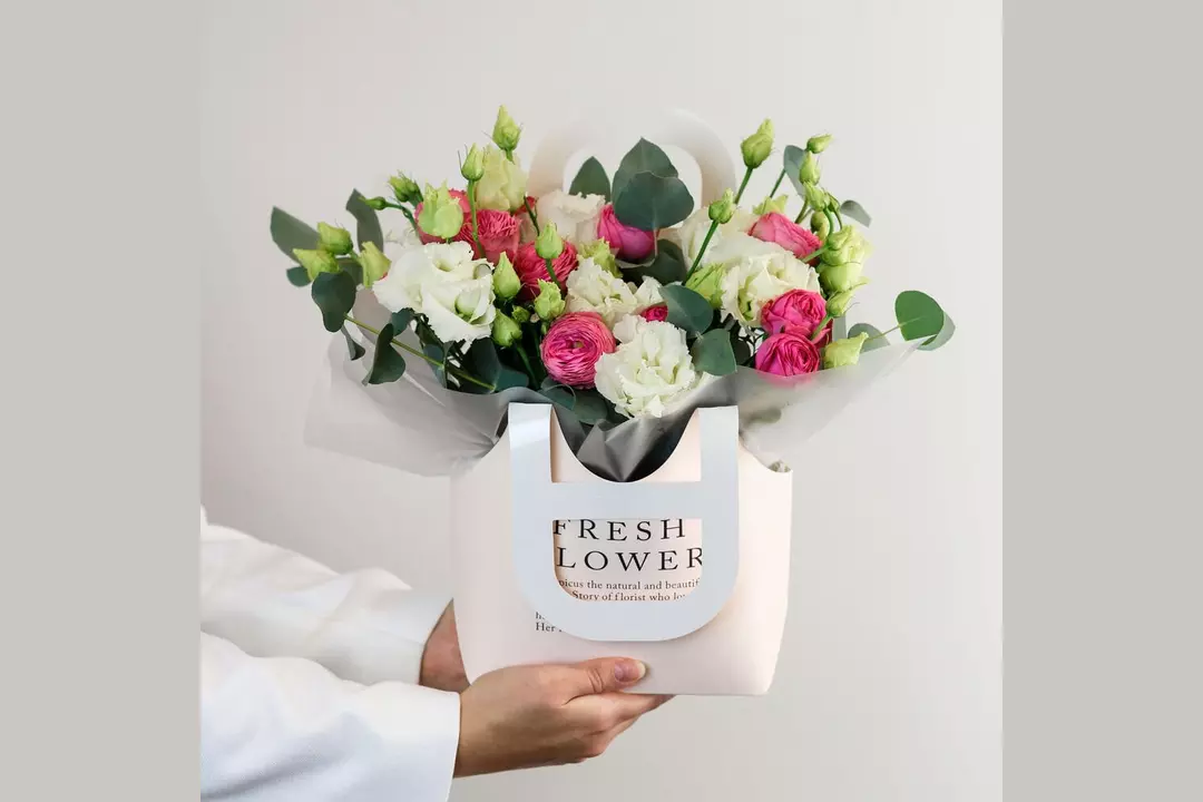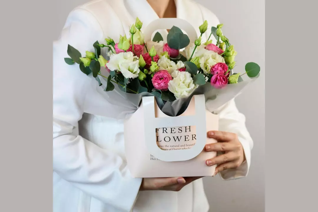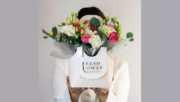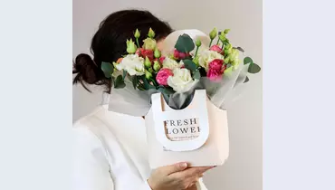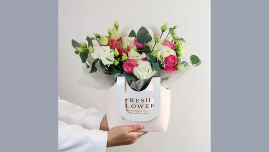 Композиция в сумочке «Утренний свет» из кустовой розы и эустомы FMART by flowwow