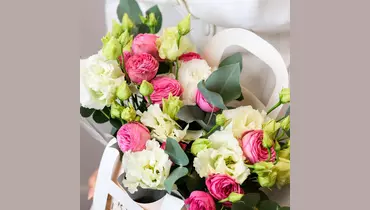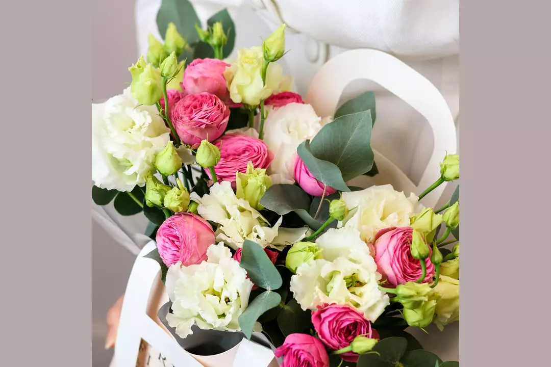 Эта цветочная композиция превратит обычный день в особенный, а праздник сделает еще ярче и приятнее! Поверьте нашему опыту: такой подарок никого не оставит равнодушным. 🌷 Чтобы цветы в композиции радовали как можно дольше 🌷: * Не доставайте их из флористической губки. * Каждый день поливайте губку отстоянной водой комнатной температуры. Следите, чтобы вода не попадала на головки цветов. * Срезайте увядшие бутоны. * Держите цветы подальше от фруктов, сквозняков, прямых солнечных лучей, источников тепла (батареи, настольные лампы, кипящий чайник). .Состав Лизиантус - 3 шт. Роза кустовая - 2 шт. Эвкалипт - 1 шт. Оазис - 1 шт. Сумка для цветов - 1 шт.