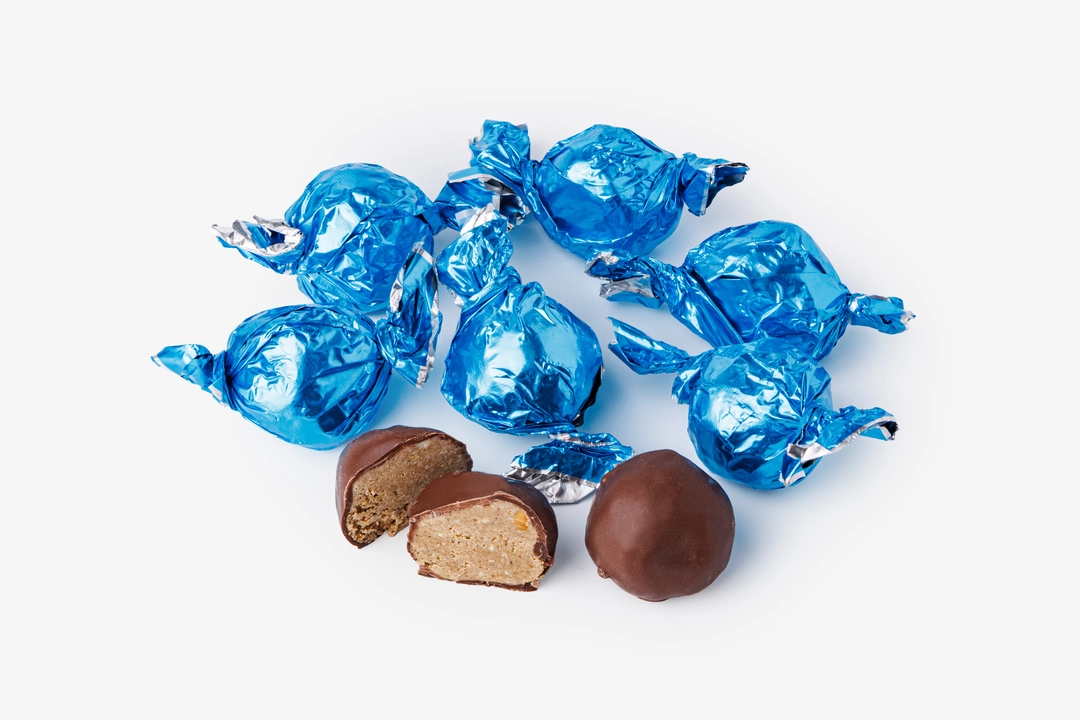 Рассыпчатая подсолнечная халва, приготовленная на экстракте мыльного корня, сочетается с дроблёным обжаренным арахисом — получается насыщенный ореховый вкус. Всё это дополнено вафельной крошкой и покрыто гладкой глазурью из тёртого какао с ванильными нотами. Хороший вариант к чаю или кофе — особенно для тех, кто любит классические восточные сладости в современной подаче.