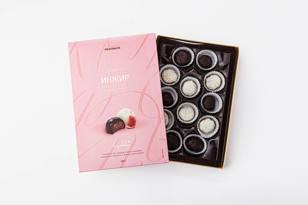 Конфеты "Инжир в горьком и белом шоколаде", 220 г