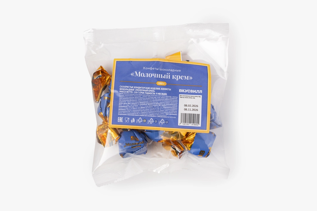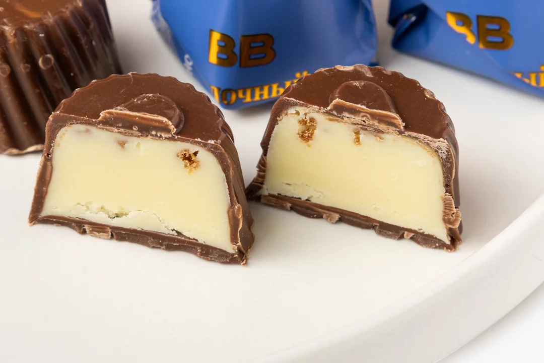 Конфеты с нежным молочным кремом в корпусе из классического молочного шоколада. Крошка кофейного бисквита добавляет лакомству лёгкий хрустящий акцент, а ваниль — мягкие тёплые ноты. Подавайте в качестве десерта к чашке ароматного чая, горячего кофе или какао с молоком. Конфеты можно взять на работу или в дорогу для сладкой паузы или предложить гостям за праздничным столом.