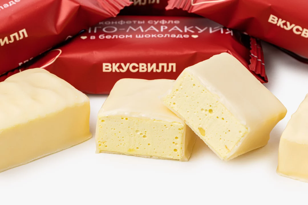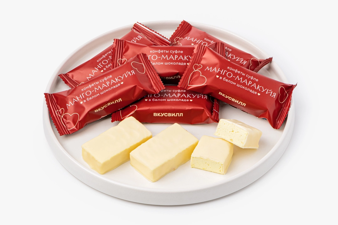 Конфеты суфле манго-маракуйя в белом шоколаде