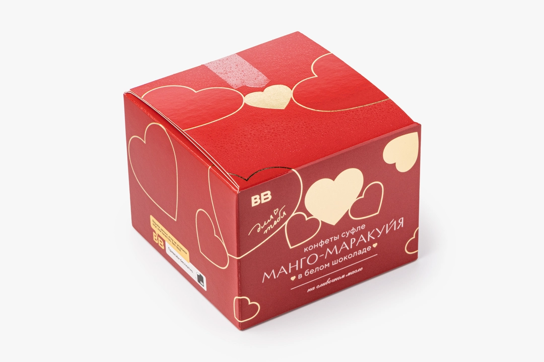 Коробочка воздушного суфле с дуэтом манго и маракуйи в гладкой шоколадной оболочке станет приятным подарком дорогому человеку. Молотые плоды и кусочки фруктов делают начинку особенно яркой и нежной: манго добавляет медовый оттенок, а маракуйя — освежающую кислинку и характерную терпкость. Корпус из белого шоколада с ванильными нотами дополняет вкус мягкой сладостью