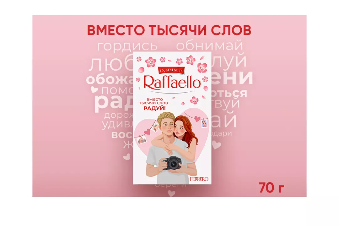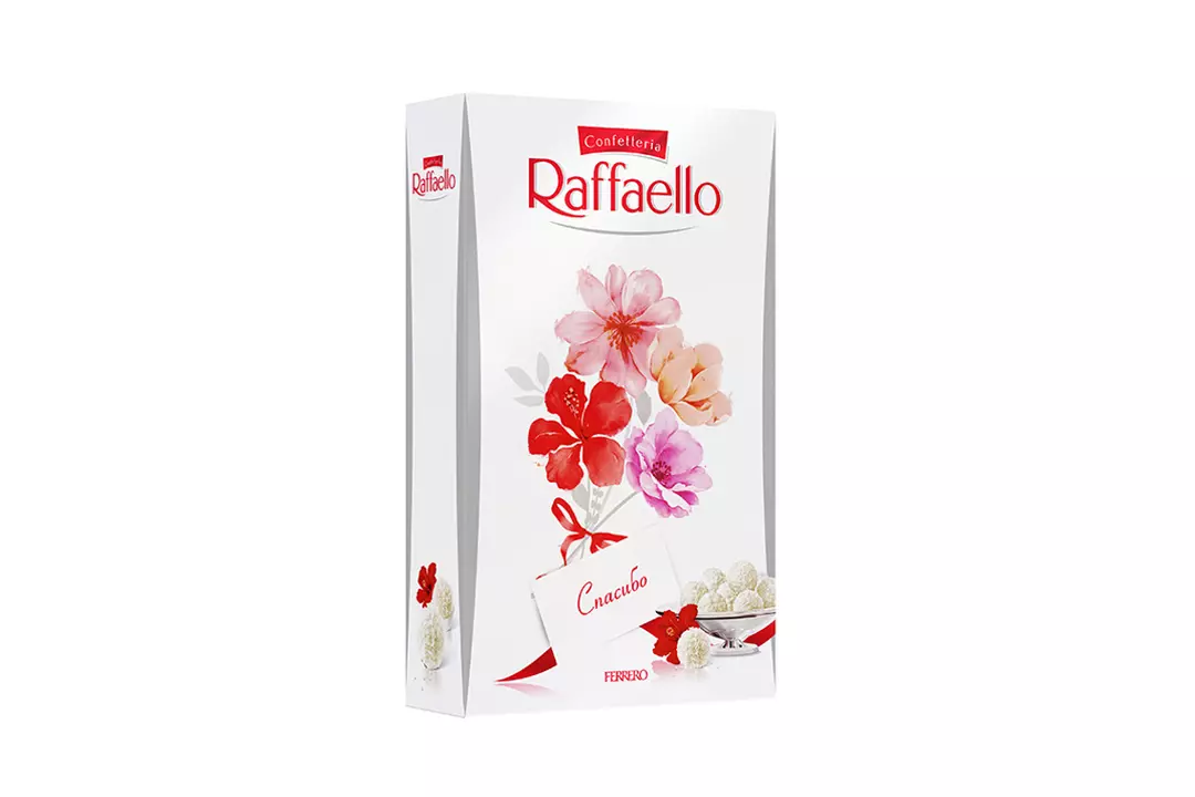 Raffaello - любовь в каждом моменте! Каждый момент может стать поводом выразить свою любовь и привязанность. Raffaello - это идеальный способ дать понять вашим близким, как много они для вас значат, ведь каждый момент с Raffaello становится особенным. Конфеты Raffaello - лучший подарок для вашего любимого человека. Уникальный вкус Raffaello - это удовольствие и незабываемые впечатления, которыми можно насладиться в кругу близких или просто весело провести время. Белый хрустящий миндаль, покрытый бархатистой кремовой начинкой и посыпанный нежной кокосовой стружкой придает непередаваемую нежность вкусу. • Для особенного признания в чувствах; • Эстетичная и удообная упаковка; • Конфеты в подарок; • Отборный кокосовый орех; • Подходит на перекус; • Конфеты с миндалем, кокосовая обсыпка; •Лучший подарок на праздник. Страна-производитель Россия