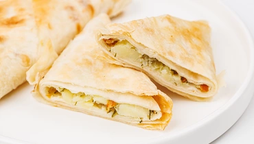 Тонкий лаваш с сытной начинкой из картофеля, маринованных опят и огурцов. Грибы добавляют лёгкую пряность, а огурцы – приятную кислинку. В составе также есть соус на основе цветной капусты и горчицы, который делает вкус насыщеннее. Начинки много, а лаваш остаётся мягким даже после разогревания.