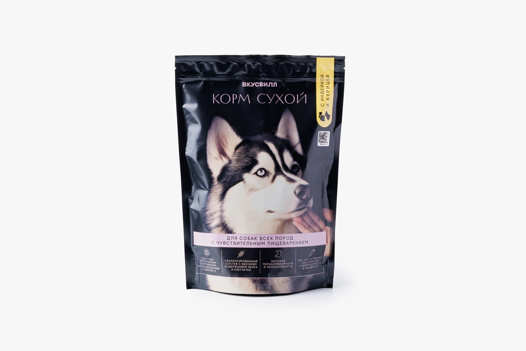 Корм сухой для собак всех пород с чувствительным пищеварением с индейкой и курицей