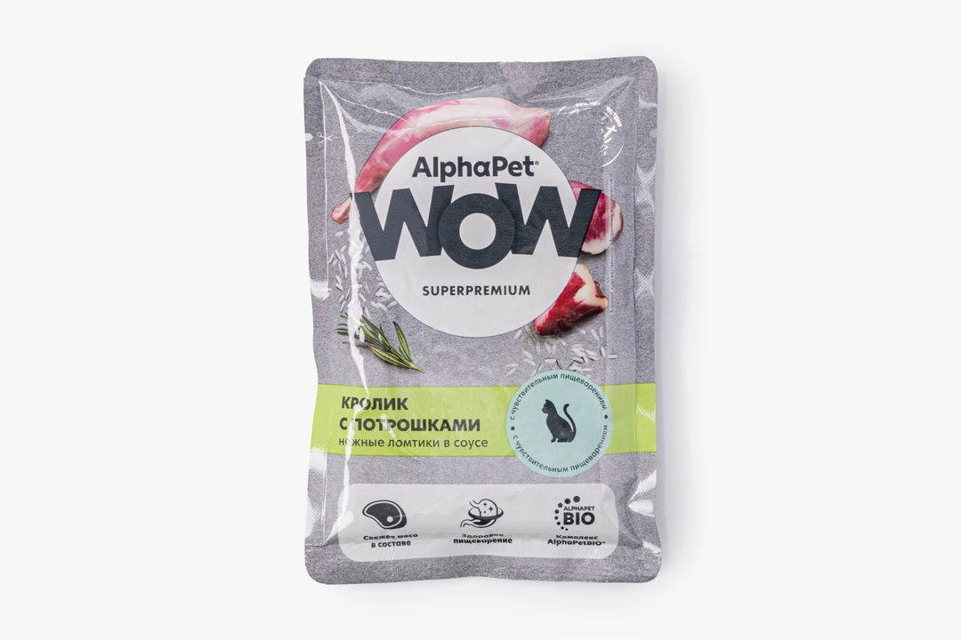 Корм влажный для кошек с чувств. пищеварением "Кролик с потрошками нежные ломтики", 85 гр