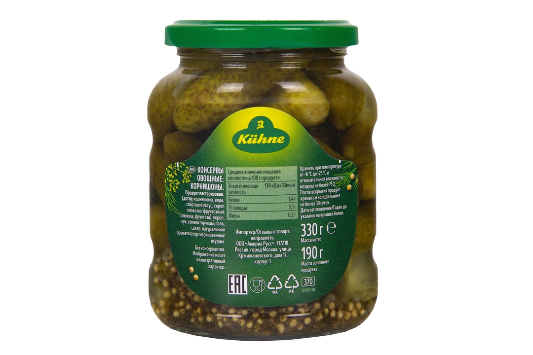 Корнишоны маринованные Kuhne 330 г / Супермаркет