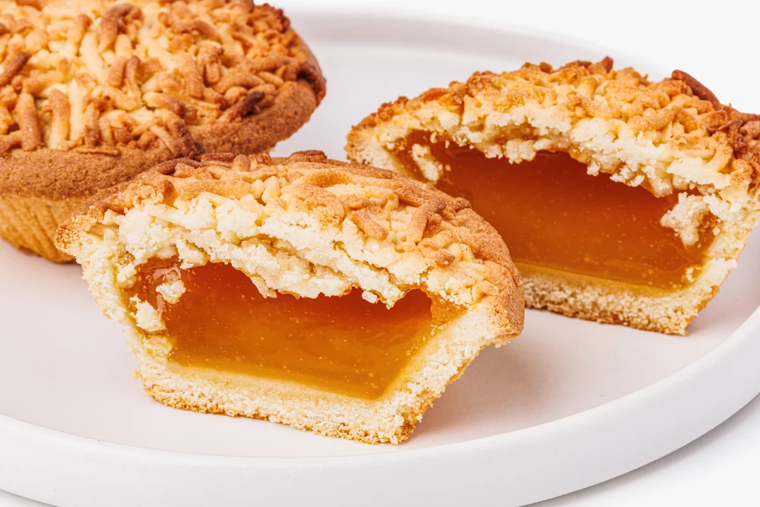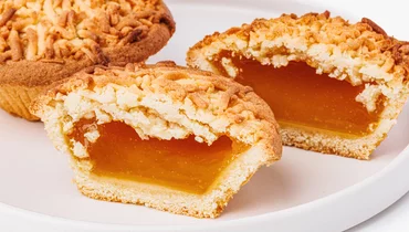 Хрустящие песочные корзиночки с тропической начинкой из манго и маракуйи — словно кусочек лета в угощении. Рассыпчатое тесто на сливочном масле выступает основой для яркой фруктовой сердцевины. Пюре манго и маракуйи сохраняет натуральную кислинку и сочный аромат. Корзиночки не приторные — фруктовая свежесть балансирует сладость песочной основы. Удобный формат делает их подходящими для чаепития или лёгкого десерта.