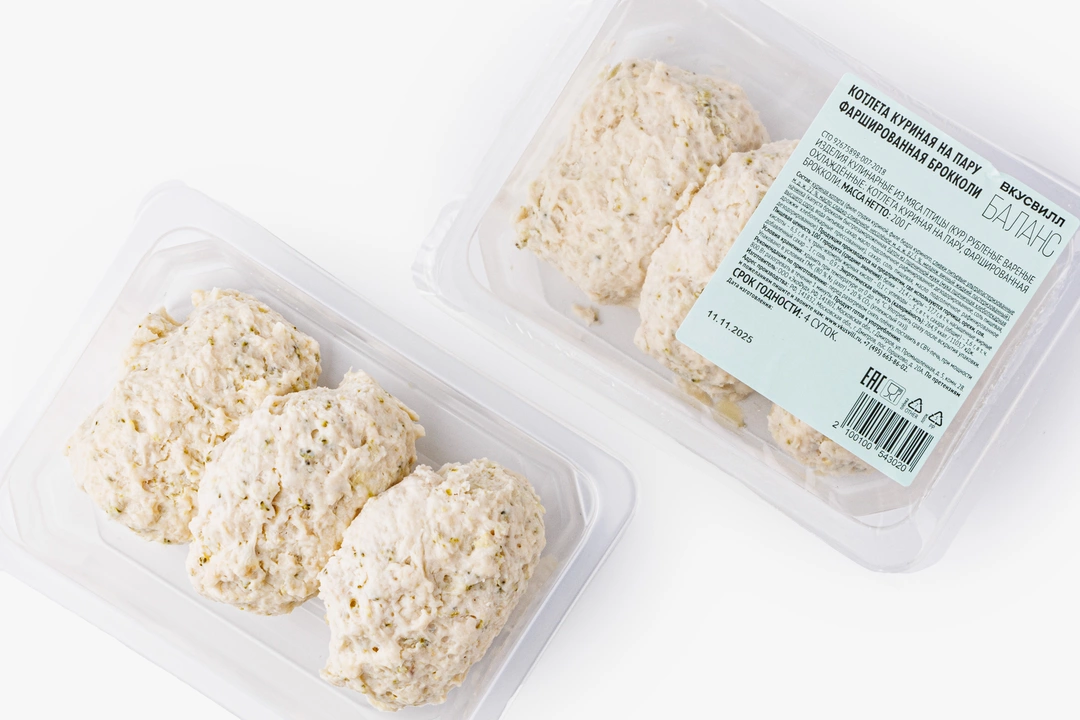 Нежные куриные котлеты приготовлены на пару и начинены измельчённой брокколи. Благодаря сливочному маслу в составе мясо остаётся особенно мягким и сочным, а вкус получается более нежным. Такая подача делает блюдо универсальным — его можно сочетать с овощами, крупами или подавать с лёгким соусом.