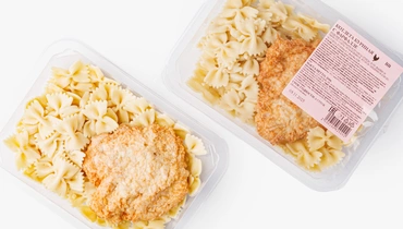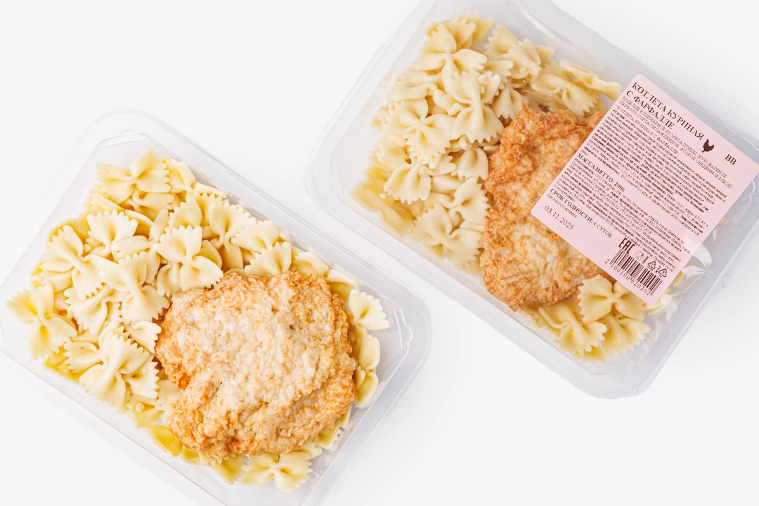 Нежная куриная котлета с макаронами-бабочками из твёрдых сортов пшеницы. Состав проверен: нет усилителей вкуса, консервантов и антибиотиков