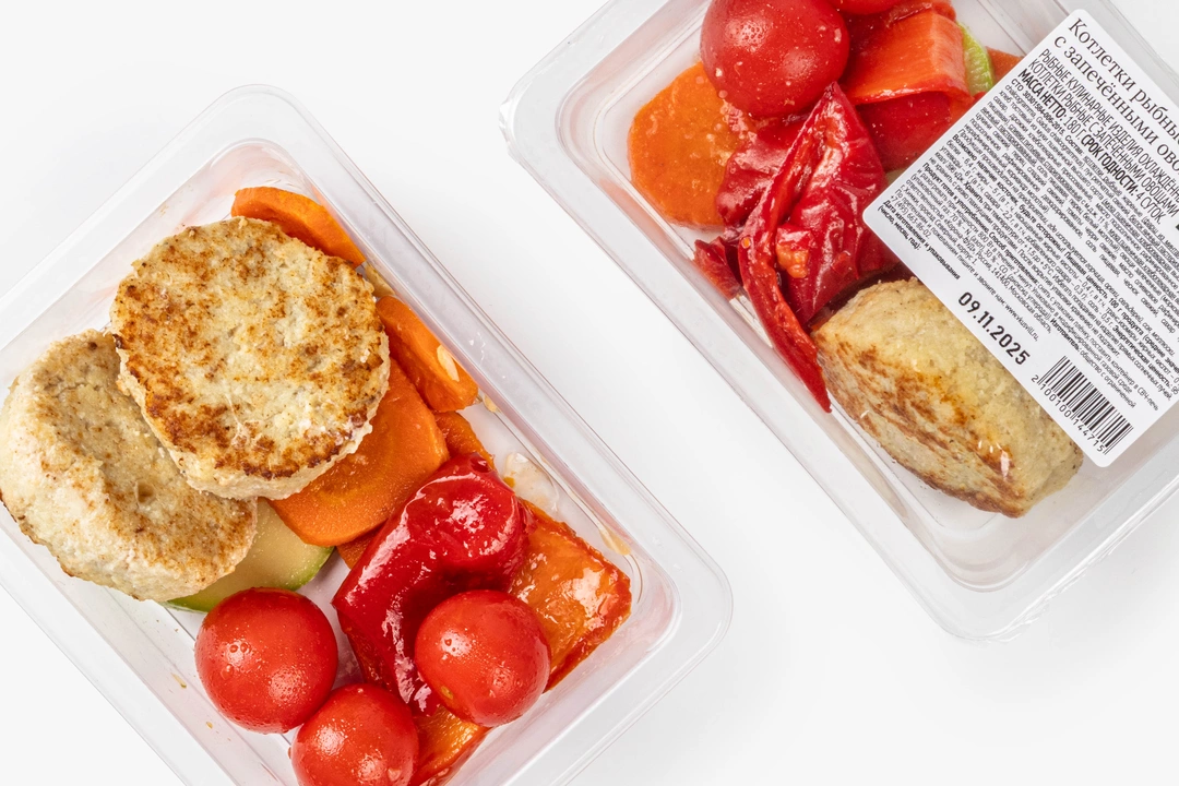 Котлетки рыбные с запеченными овощами