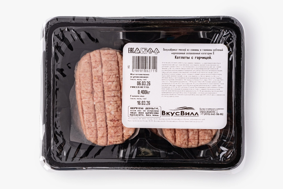 Мясные котлеты с мягким горчичным акцентом. Семена горчицы, паприка и чеснок придают вкусу лёгкую пикантность, а чёрный перец и чили добавляют тёплый пряный оттенок без резкой остроты. Текстура получается сочной, котлеты хорошо держат форму при жарке или запекании. Подойдут для подачи с картофельным пюре, крупами или овощными гарнирами. Удобный вариант, когда хочется приготовить что-то привычное, но с необычным акцентом. Продукт охлаждённый, требует термической обработки