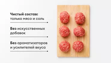 Мини-котлеты всего из двух ингредиентов: телятины и соли. Никаких искусственных добавок или усилителей вкуса. Дополнительно проверяем мясо на содержание 23 видов антибиотиков