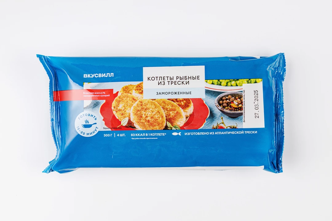 Мягкие котлеты из трески, приправленные сливочным маслом для особенной нежности. С сухарной панировкой, которая после обжарки превратится в аппетитную хрустящую корочку. Не требуют разморозки — можно сразу отправить на разогретую сковороду. В зависимости от производителя в упаковке может быть 3 или 4 котлеты (суммарный вес одинаковый).