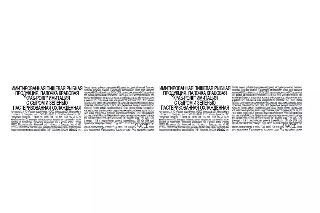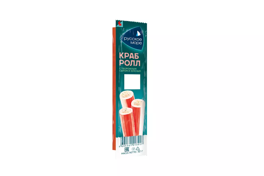 Краб ролл Русское море крабовая палочка имитация с сыром и зеленью 50 г / Супермаркет