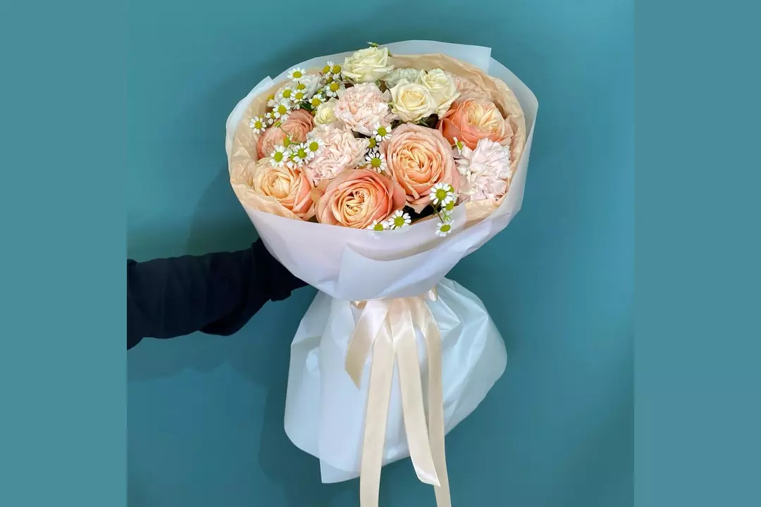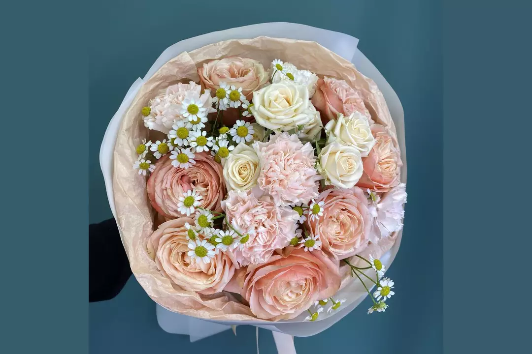 Крем брюле. Розы ромашки гвоздики FMART by flowwow