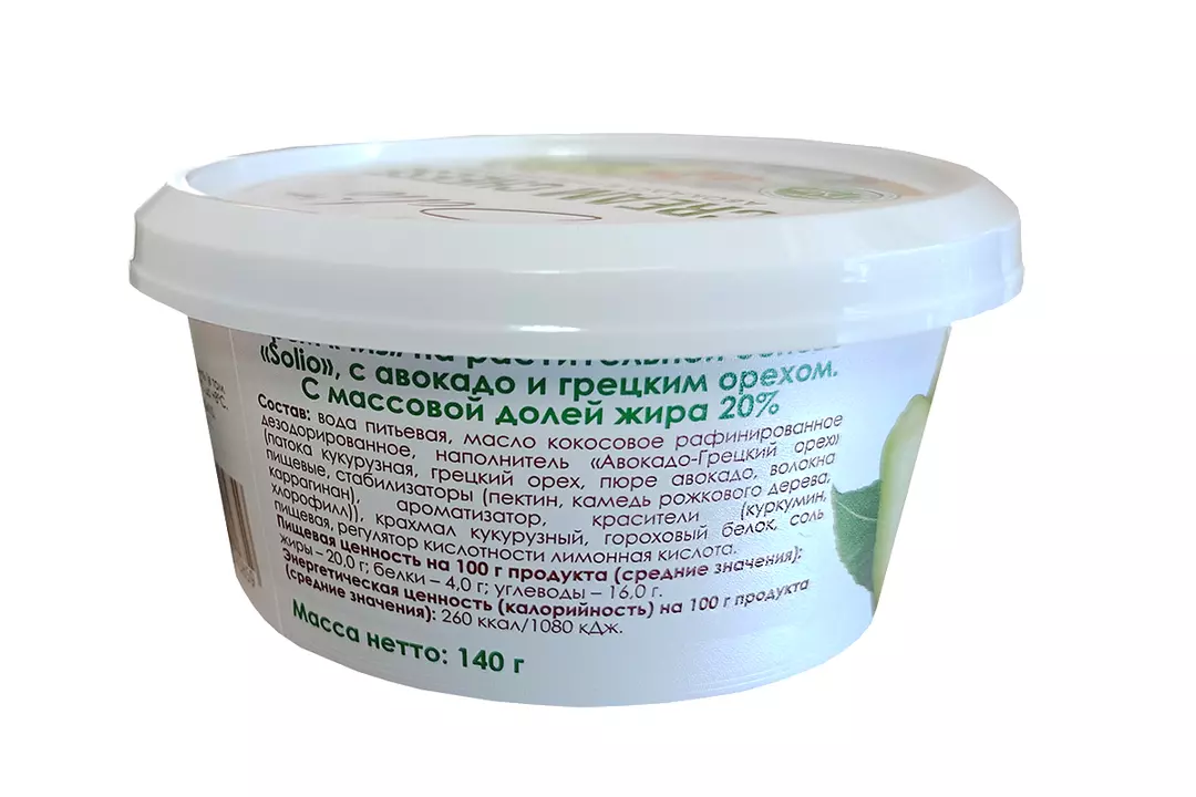 Крем чиз Solio на растительной основе авокадо и грецким орехом 20% 140 г / Супермаркет
