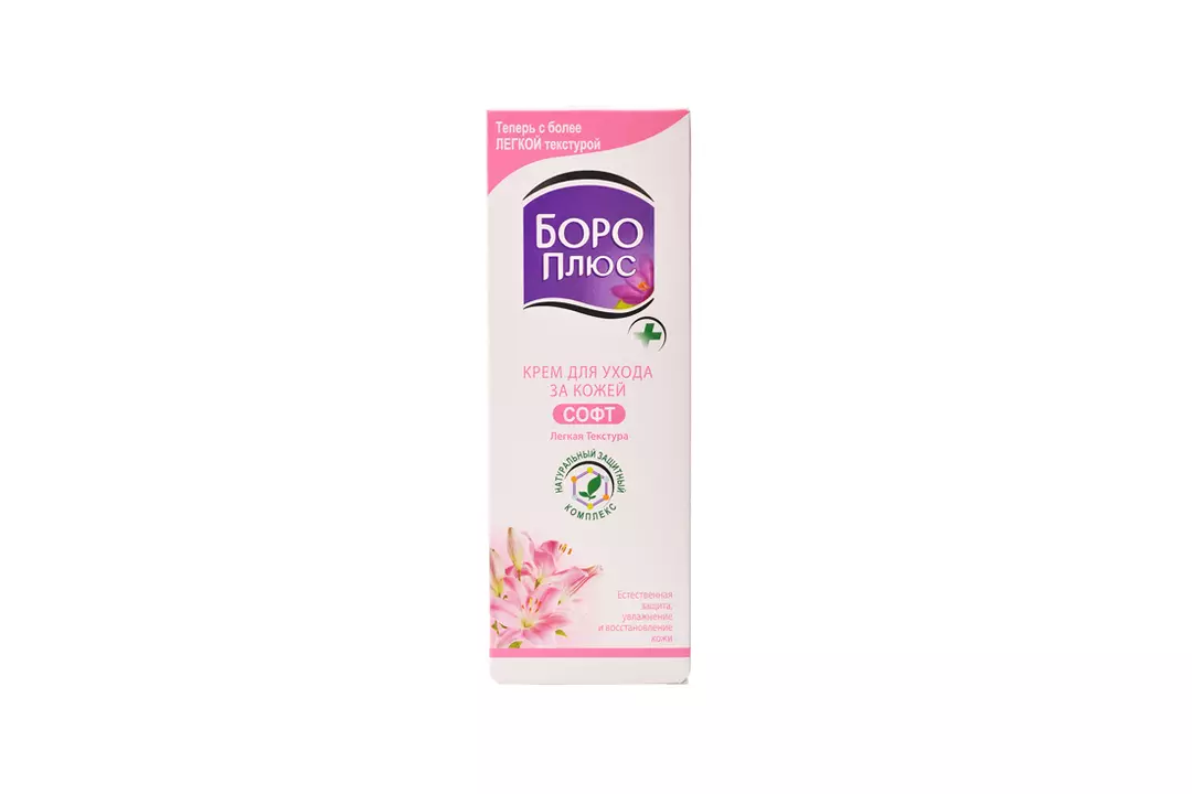 Крем для ухода за кожей БОРО ПЛЮС СОФТ - новинка от бренда БОРО ПЛЮС – это универсальный многофункциональный крем для защиты и восстановления кожи с уникальной мягкой нежирной текстурой и нежным цветочным ароматом. • Облегченная мягкая текстура крема Софт обеспечивает комфортное нанесение, быструю впитываемость и, как следствие, моментальную эффективность; • К основной формуле состава, обеспечивающих мощный заживляющий и восстанавливающий эффекты дополнительно добавлен широкий список увлажняющих и питательных ингредиентов, что ускоряет процессы регенерации и обеспечивает еще больше питания кожи: глицерин, масло кокума, масло виноградных косточек, витамин Е, павония, водяная лилия; • Новый приятный аромат – прекрасная альтернатива для тех, кто не покупал крем из-за аромата или его полного отсутствия; • Это универсальный крем для решения различных проблем и повреждений кожи, а также для ежедневного ухода и увлажнения. БОРО ПЛЮС - ОДИН КРЕМ ОТ МНОЖЕСТВА ПРОБЛЕМ! Это универсальное косметическое средство для всей семьи! Результат: восстановление, заживление, защита от внешних воздействий, питание, повышение упругости, разглаживание, смягчение, увлажнение. Страна-производитель Индия/ОАЭ