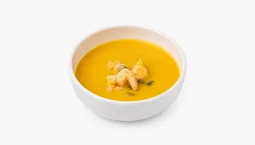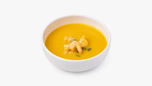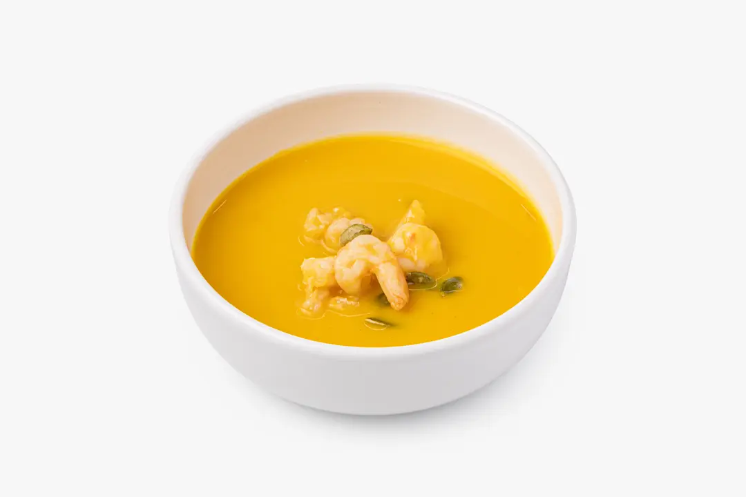 Крем-суп с тыквой и жареными креветками