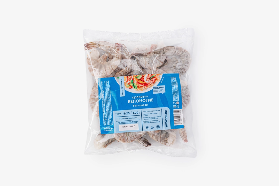 Нежные, сочные и крупные креветки обладают изысканным сладковатым вкусом и эффектным внешним видом. Они уже очищены от головы и бережно заморожены. Продукт подходит для быстрой обжарки на сковороде или гриле, особенно с ароматным оливковым маслом, чесноком и тимьяном. Как только креветки станут розоватыми, их можно снимать с огня. Допускается и варка, однако мясо может стать излишне мягким. Каждая креветка имеет тонкую ледовую оболочку, при этом масса защитной глазури составляет не более 7%.