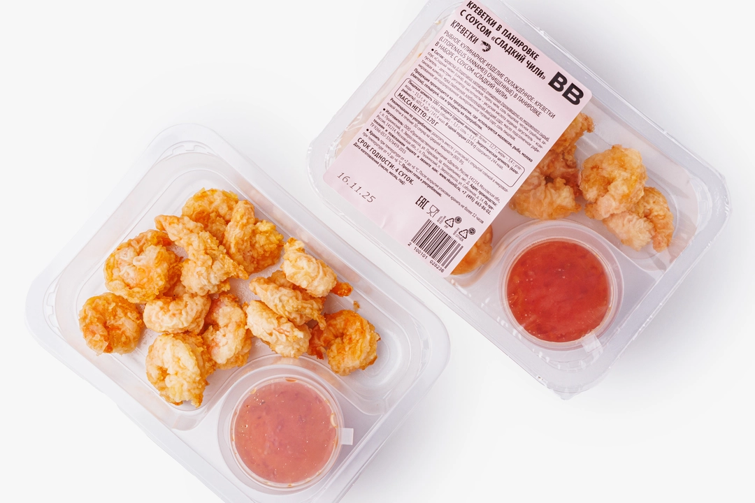 Золотистая панировка на контрасте подчёркивает нежный, чуть сладковатый вкус креветок. Их мясо сочетается с пикантно-сладким соусом, где острота чили соединяется со сладостью, а чесночок добавляет насыщенности. Вместе они создают яркий, сбалансированный вкус и звучат в унисон: сначала чувствуется мягкая сладость, а затем — лёгкое жгучее тепло в послевкусии. Такое блюдо подойдёт и как тёплая закуска к ужину, и как быстрый перекус, если хочется чего-то насыщенного и чуть пикантного. Будто его только что приготовили на прибрежной кухне у моря и подали в маленьком кафе.