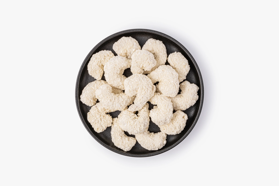 Креветки в обсыпке из панировочных сухарей — это бережно замороженный полуфабрикат, с помощью которого вы быстро приготовите снек для домашнего киносеанса или вечера в дружеской компании. Достаточно обжарить креветки в течение нескольких минут во фритюре, чтобы корочка стала золотистой и хрустящей, а мясо внутри осталось мягким и сочным, с лёгким сладковатым привкусом. Благодаря высокому содержанию белка продукт получается не просто вкусным, но также сытным и питательным.