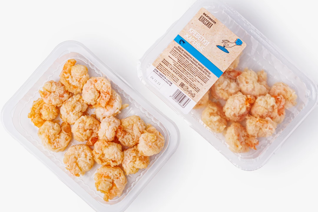 Готовые очищенные креветки в панировке. Богаты белком. Мы неиспользуем консерванты, поэтому у них короткий срок хранения — всего 6 суток